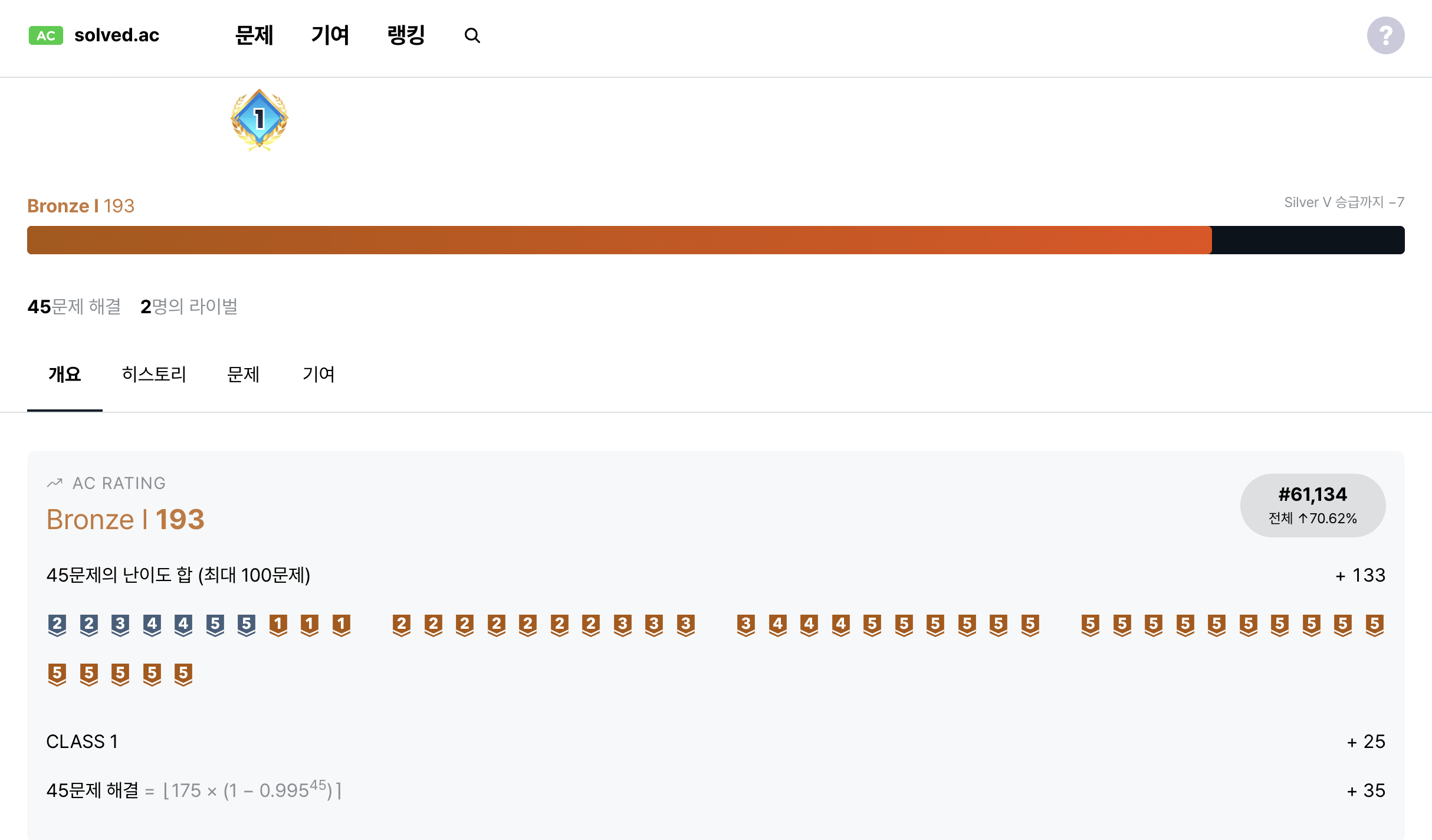 solved.ac 는 백준 사이트의 문제를 기반으로 클래스별(난이도) 문제를 분류해놓아서 로드맵을 짜기 편하게 되어 있습니다.