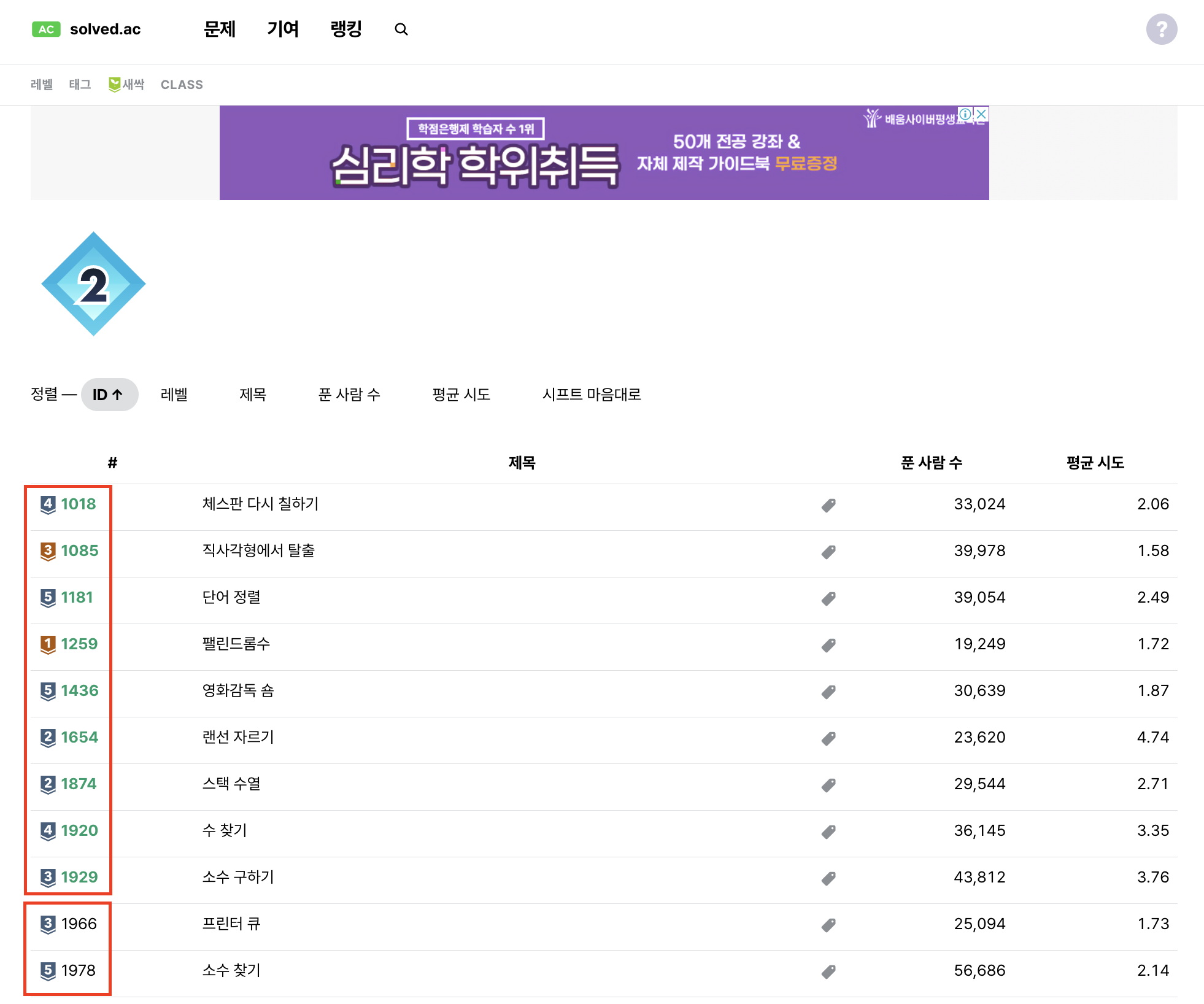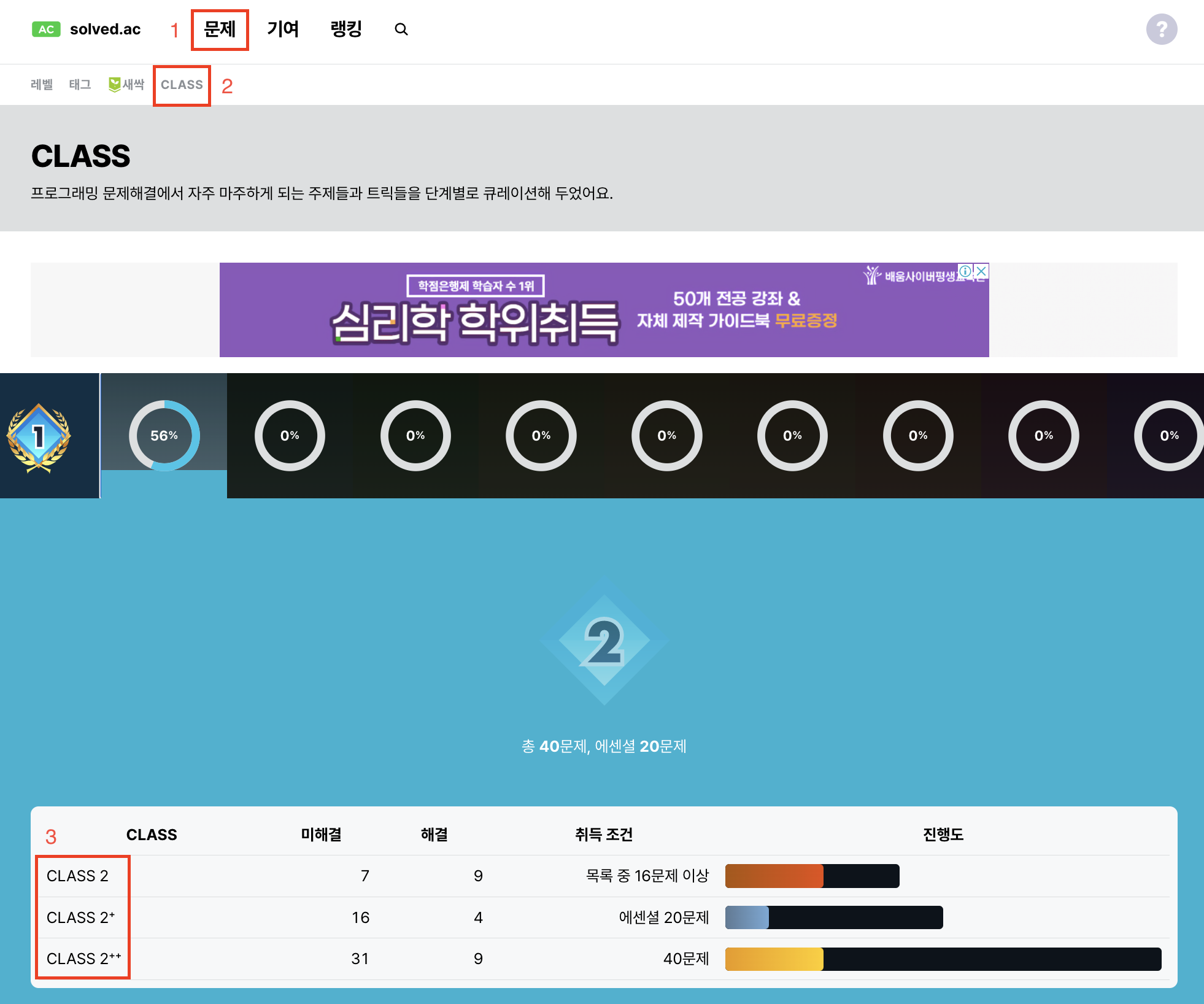 여러가지 방법이 있겠지만 저는 아래와 같은 순서로 들어가서 class 순서대로 푸는 중입니다.