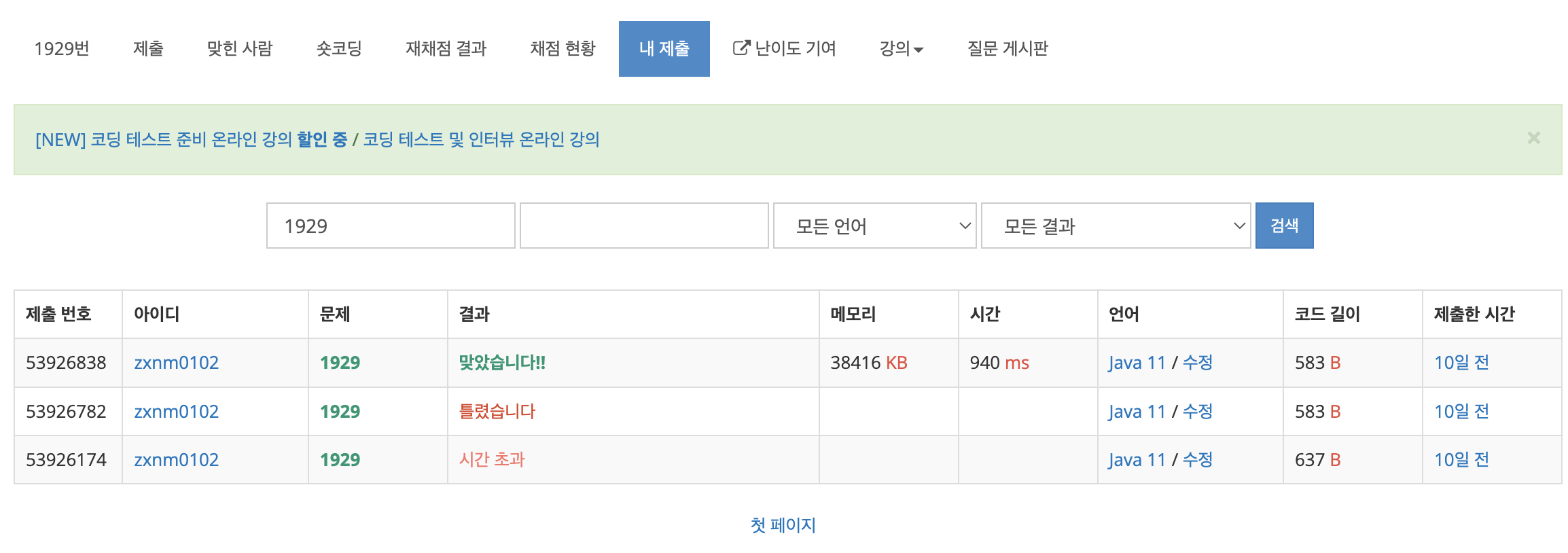 '내 제출'을 누르면 해당 문제를 몇 번 시도했으며 결과는 어땠는지 모두 확인이 가능합니다ㅎㅎ