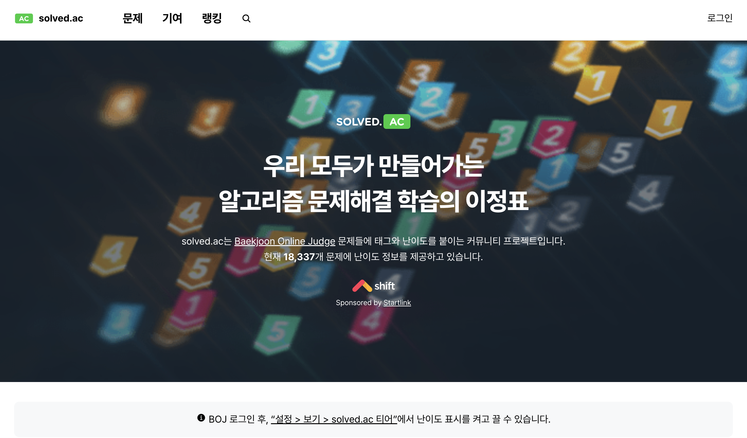 대표적인 코딩테스트 사이트로는 프로그래머스, 백준을 많이 들어보셨을 거다. 나도 둘 중 하나를 고르려고 고민을 하던 중, 회사 신입 스터디 중 한 분이 학원에서 사용했던 solved.ac 라는 사이트를 소개시켜 주셨습니다.