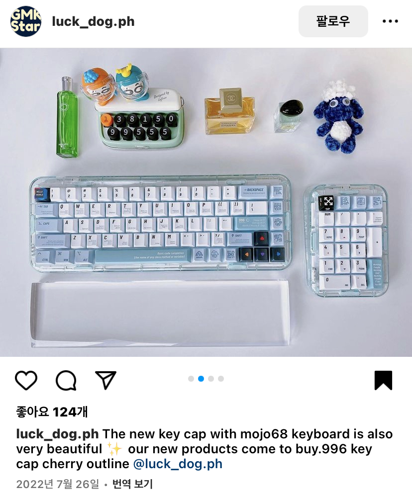 그렇게 한 달 가량이 지나고, 기계식 키보드에 본격적으로 관심을 가지게 된 건 다름아닌 인스타 알고리즘에 뜨게 된 '예쁜 키보드' 때문 이었습니다.