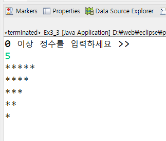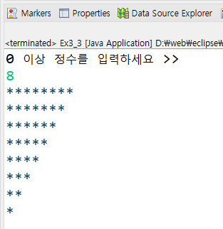 3장 실습문제 3번 : scanner를 이용하여 정수를 입력받고 입력받은 정수만큼 *를 다음과 같이 출력하는 프로그램