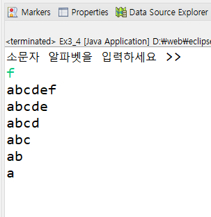 3장 실습문제 4번 : scanner를 이용하여 소문자 알파벳을 하나 입력받고 다음과 같이 출력하는 프로그램