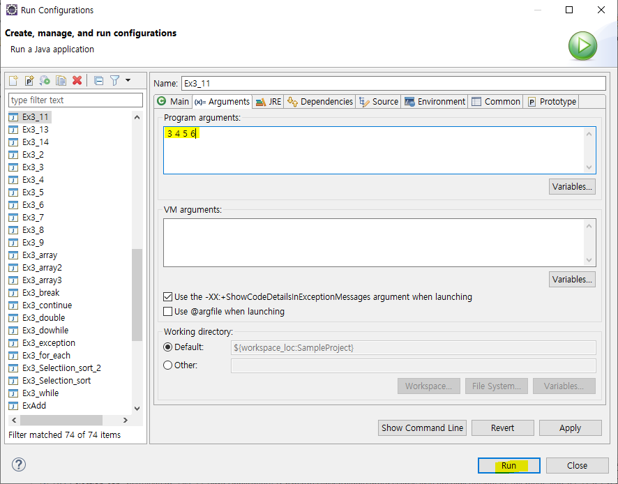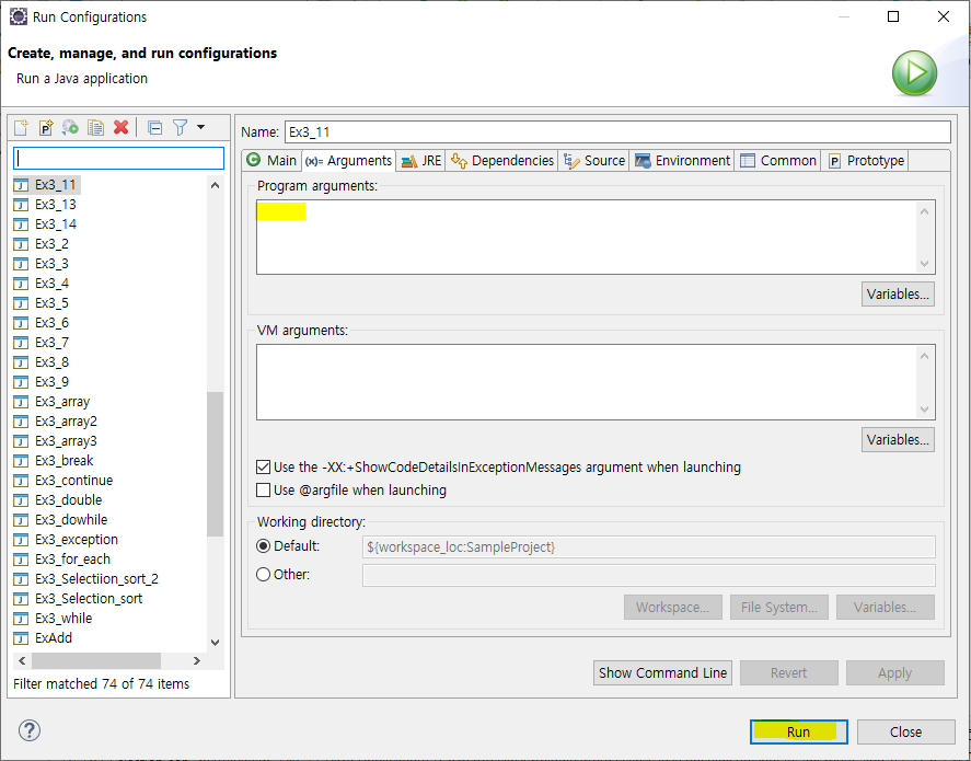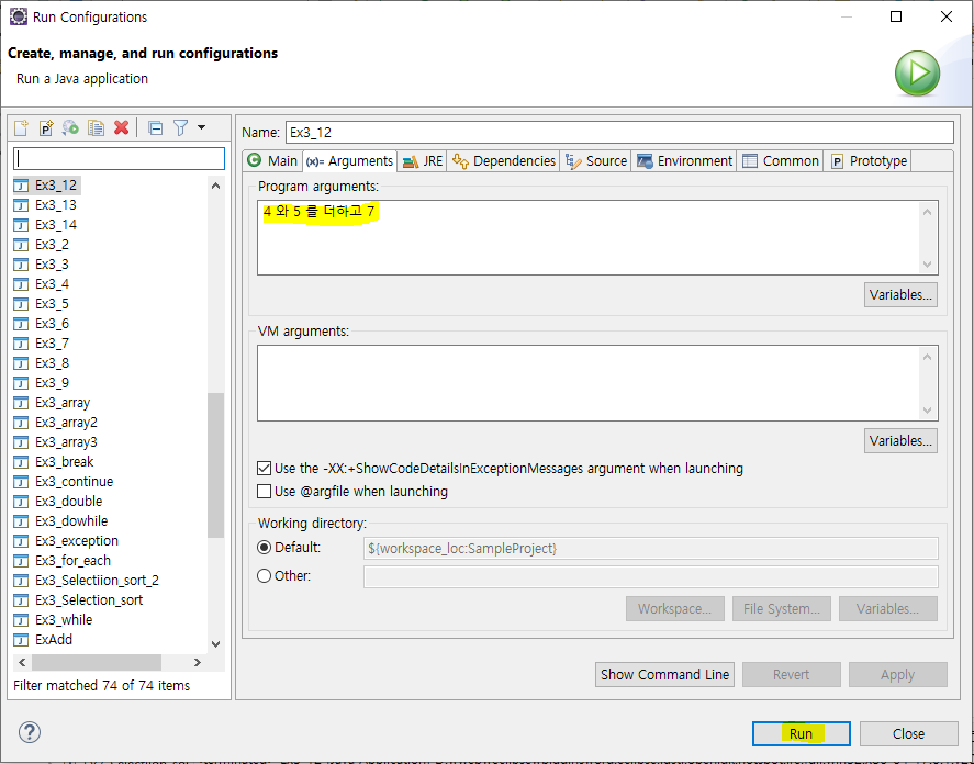 Run Configurations 로 확인!