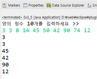 System.out.println("양의 정수 10개를 입력하세요 >> ");