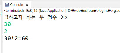 System.out.println("곱하고자 하는 두 정수 >> ");