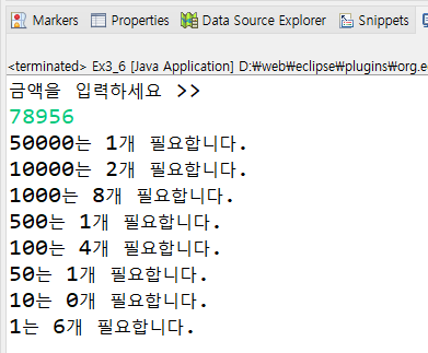 System.out.println(unit[i]+"는 "+money/unit[i]+"개 필요합니다.");