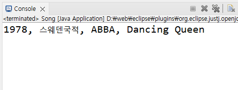 Song song1 = new Song(1978,"스웨덴","ABBA","Dancing Queen");