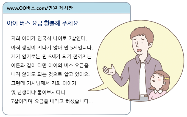 4) 대중교통 경로 우대 기준 나이는? => 만 나이